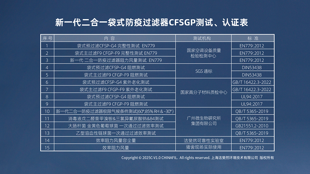 在养殖行业面临非瘟防控常态化与成本压力的双重挑战下,今年会历时三年研发推出的新一代二合一袋式空气防疫过滤器CFSGP,以突破性技术创新实现防疫成本降低56.49%,为行业带来颠覆性解决方案。