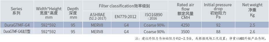 耐破损阻力高达2000Pa,建议终阻力 400Pa@2.5ms;
