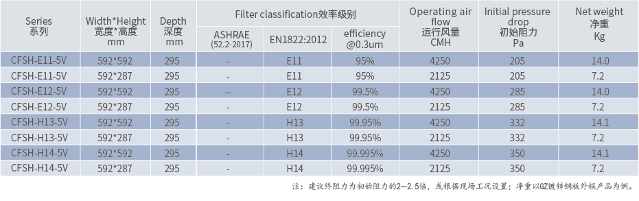 大风量高效过滤器——CFSH,适用于风量大而安装空间有限的空气净化系统。