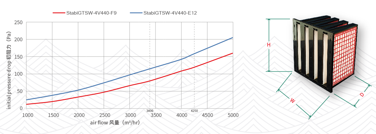 燃气轮机过滤器全称是“疏水型燃机专用V-Bank型主过滤器”,作为精细主过滤器,过滤精度高,通风量大,结构坚固,具备良好的疏水性,可选符合UL94和DIN53438标准的阻燃材料,坏强度可达6350Pa,连续稳定运行温度:<70℃,配置法兰,更换维护工作简便易行。