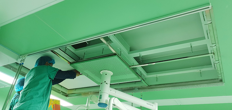 今年会洁净医疗系统空气净化解决方案包括手术室层流净化、手术室空气过滤、ICU病房空气净化、传染病房空气净化、传染病房排气过滤、无菌病房空气净化、静脉配置中心空气净化等等,涵盖新建和改造升级。净化的基本方式是:室外空气通过气流通道时进行初中高效多级过滤,使空气品质达到GB50333-2013规定的洁净等级,以满足手术、康复治疗的需要。